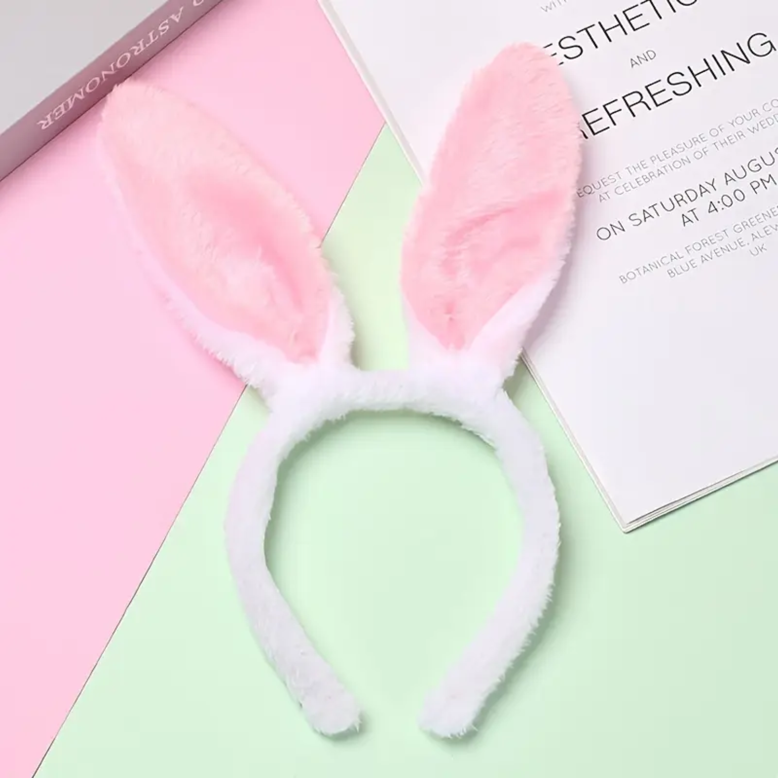 Transforma tu estilo con esta encantadora diadema de orejas de conejo blanco con rosa, diseñada para resaltar tu lado más divertido y seductor.