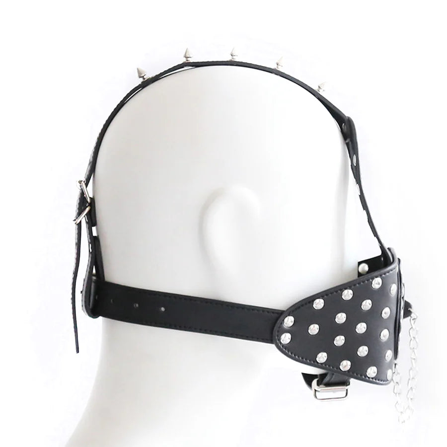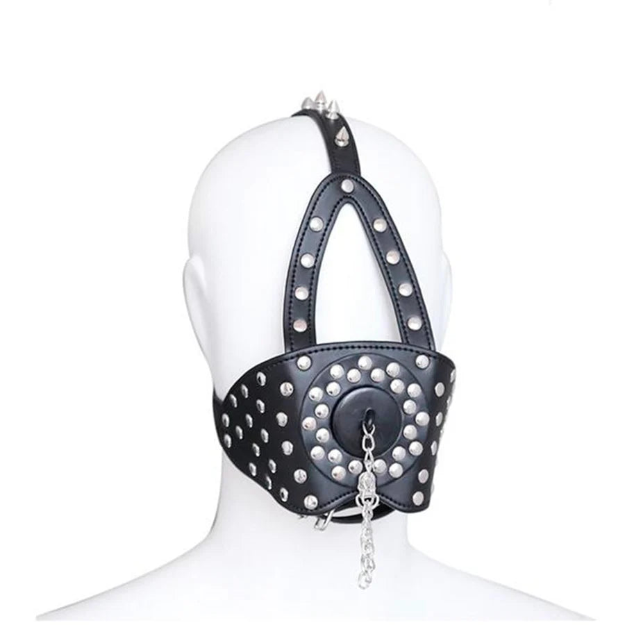 Máscara imitación cuero para los amantes de BDSM. Tiene un pequeño tapón removible en la boca, para practicar sexo oral o introducir líquidos. Las correas tienen múltiples puntos de ajuste para que se acomode al tamaño perfecto de la cara.